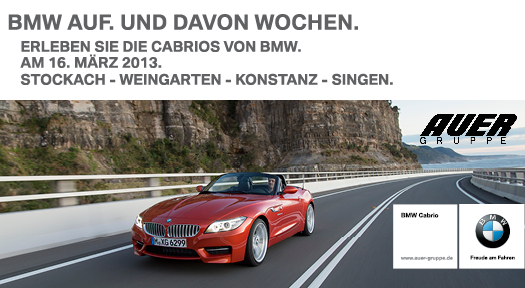 Am 16.03.2013 sind bei Auer in Stockach, Singen, Konstanz oder Weingarten die BMW Cabrio Wochen.