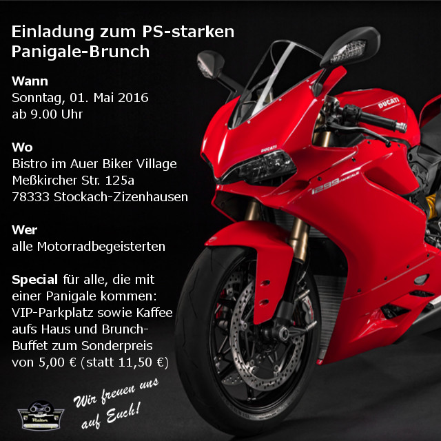 wir laden Euch herzlich ein zum PS-starken Panigale-Brunch in unserem Biker-Village Bistro.