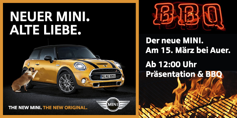 Pünktlich um 12:00 Uhr wollen wir mit Ihnen den neuen MINI Cooper enthüllen, und anschließend werden wir bis 17:00 Uhr zusammen grillen.